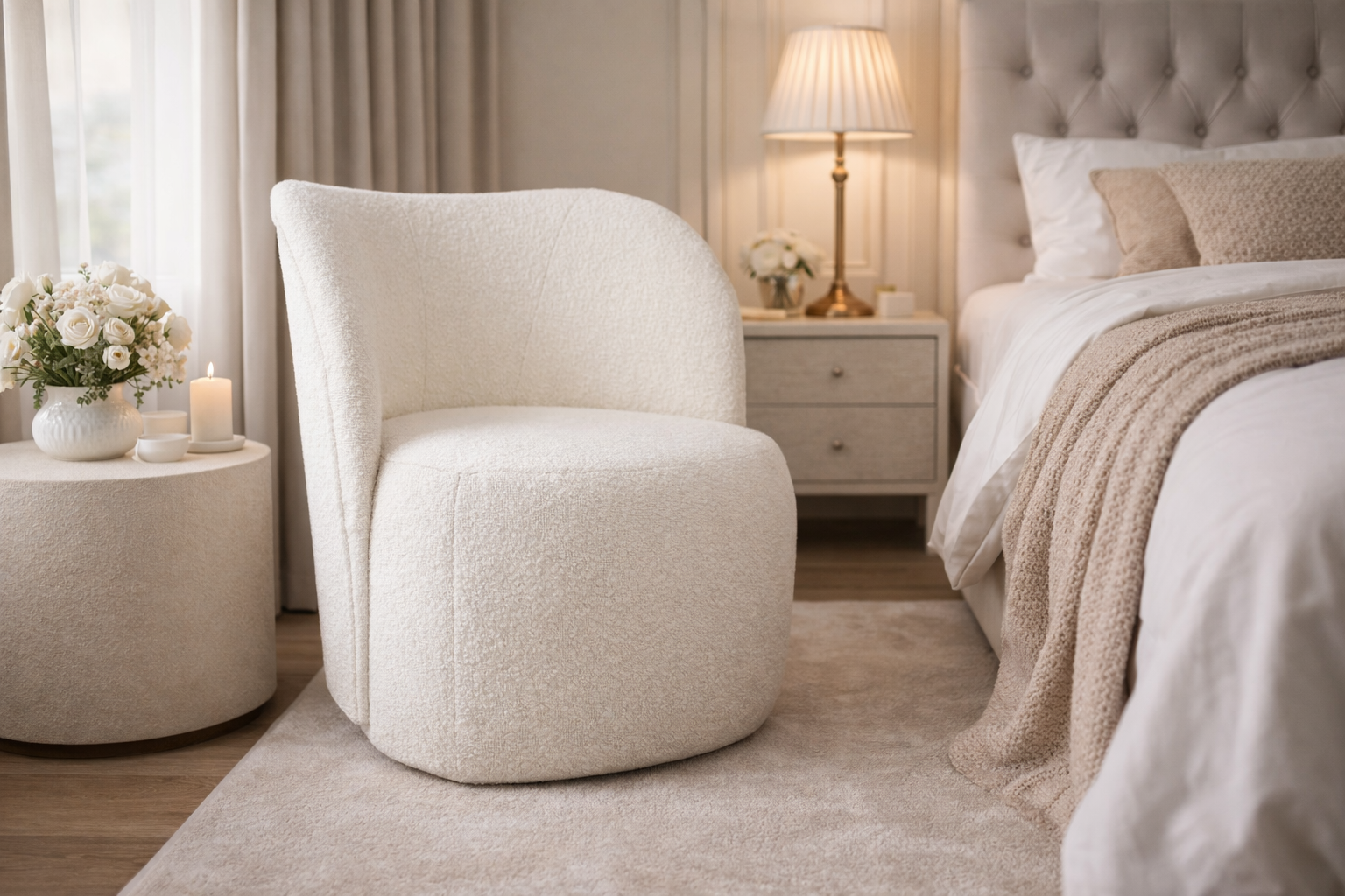 To stylowy i komfortowy mebel z obrotową podstawą, który doskonale łączy nowoczesność z funkcjonalnością. Jego ergonomiczne siedzisko, trwała konstrukcja i elegancka forma sprawiają, że świetnie sprawdzi się w salonie, biurze, kawiarni czy sypialni.
