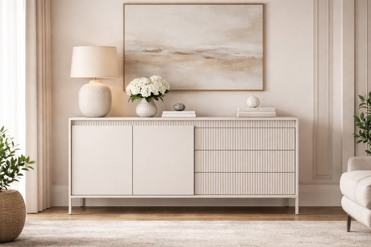 Senso to kolekcja mebli, która łączy oryginalny design z funkcjonalnością i starannym wykonaniem. Jej znakiem rozpoznawczym są ryflowane fronty MDF, zestawione z gładkimi, lekko wysuniętymi powierzchniami, co nadaje meblom nowoczesny i trójwymiarowy charakter.