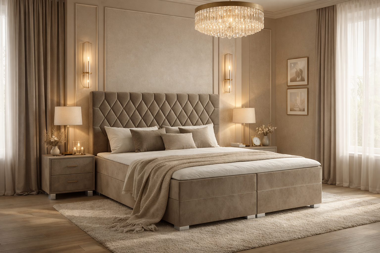 To elegancki mebel, który wyróżnia się starannymi przeszyciami na zagłowiu. Posiada tapicerowany korpus, przodek i zagłowie, co nadaje mu wyjątkowego charakteru. Obite jest miękką i przyjemną w dotyku tkaniną, która ociepla każde wnętrze. Do zestawu dołączony jest komfortowy materac Bonellowy. Łóżko wyposażone jest w dwa pojemniki na pościel, poduszki czy koce, co czyni je niezwykle funkcjonalnym. Dzięki szerokiej palecie tkanin obiciowych do wyboru, Gemini idealnie wpasuje się w każde wnętrze, dodając sypialni elegancji, przytulności i luksusowego charakteru.