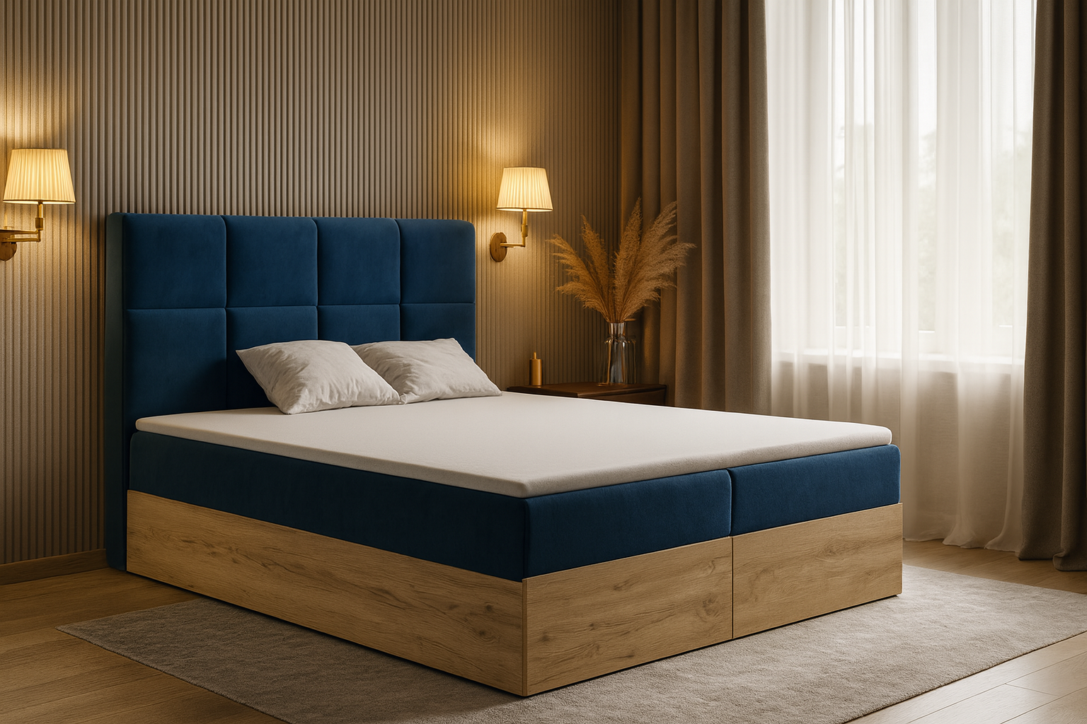 To elegancki mebel, który wyróżnia się starannymi przeszyciami na zagłowiu. Do zestawu dołączony jest komfortowy materac Bonellowy. Łóżko wyposażone jest w dwa pojemniki na pościel, poduszki czy koce, co czyni je niezwykle funkcjonalnym. Dzięki szerokiej palecie tkanin obiciowych do wyboru, Madison idealnie wpasuje się w każde wnętrze, dodając sypialni elegancji, przytulności i luksusowego charakteru.