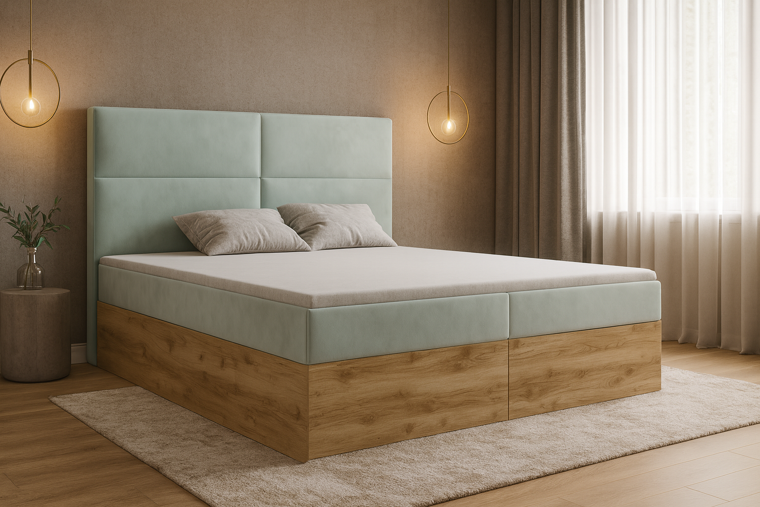 To elegancki mebel, który wyróżnia się starannymi przeszyciami na zagłowiu. Do zestawu dołączony jest komfortowy materac Bonellowy. Łóżko wyposażone jest w dwa pojemniki na pościel, poduszki czy koce, co czyni je niezwykle funkcjonalnym. Dzięki szerokiej palecie tkanin obiciowych do wyboru, Naomi idealnie wpasuje się w każde wnętrze, dodając sypialni elegancji, przytulności i luksusowego charakteru.