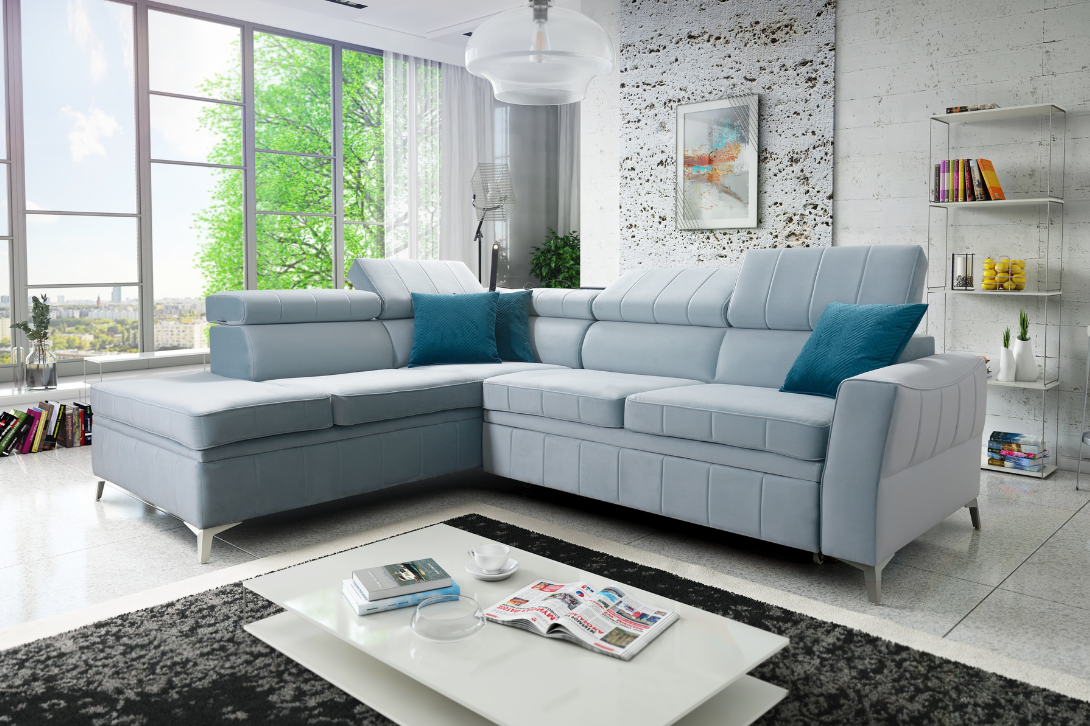 Mebel bardzo wysokiej klasy, który doskonale uzupełni Twoje wnętrze. Narożnik CHLOE łączy w sobie nowoczesny design i funkcjonalność, oferując szereg praktycznych udogodnień.