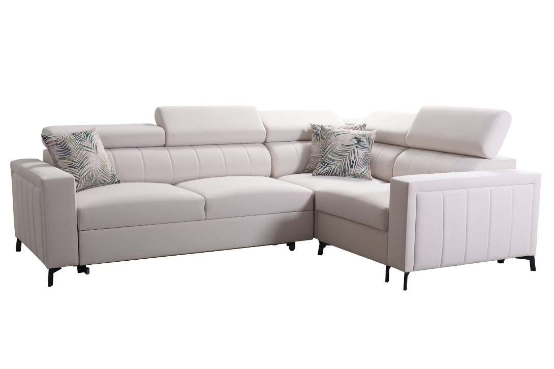 Narożnik COMO II – regulowane zagłówki + pojemnik na pościel + GRATIS PODUSZKI – 275×198 cm