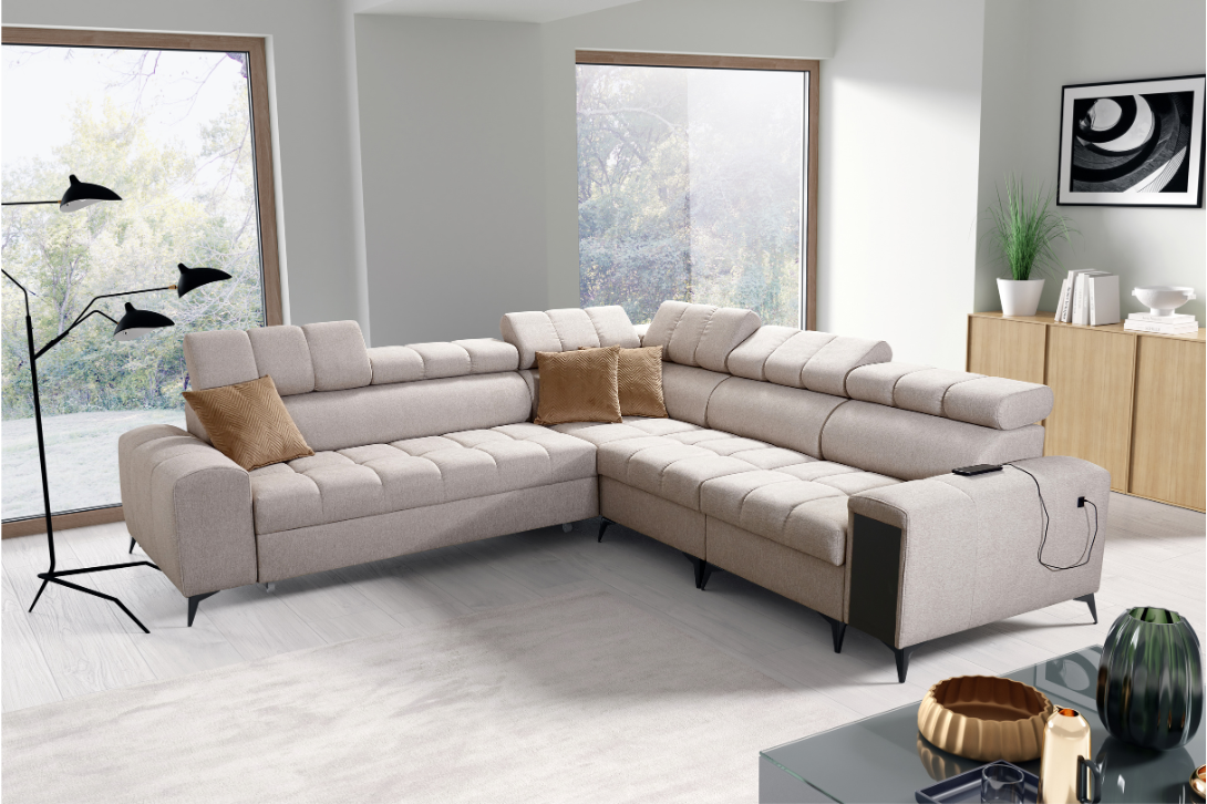 Mebel bardzo wysokiej klasy, który doskonale uzupełni Twoje wnętrze. Narożnik DIANA łączy w sobie nowoczesny design i funkcjonalność, oferując szereg praktycznych udogodnień.