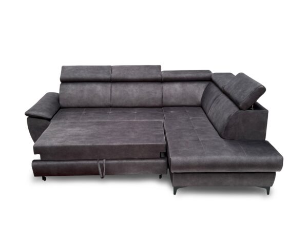 Miękkie siedzisko oparte na sprężynie falistej gwarantuje trwałość i komfort użytkowania na co dzień. Dzięki funkcji spania narożnik w kilka chwil można przekształcić w wygodne miejsce do nocnego wypoczynku.