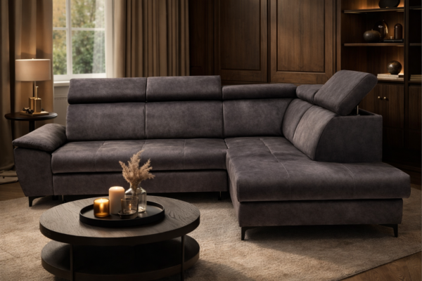 Narożnik Hector sprawia, że codzienny wypoczynek w salonie staje się wyjątkowo komfortowy i funkcjonalny. Jego nowoczesna forma oraz wysokie nóżki nadają bryle lekkości, a jednocześnie ułatwiają utrzymanie porządku pod meblem. Regulowane zagłówki pozwalają dopasować oparcie do indywidualnych potrzeb, zapewniając wygodę zarówno podczas relaksu, jak i dłuższego odpoczynku.