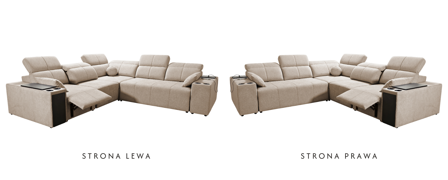 Narożnik INEZ III MIX – regulowane zagłówki + 2x barek + GRATIS PODUSZKI – 288×291 cm