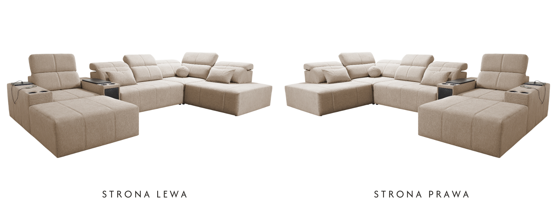 - Narożnik z funkcjonalnym szezlongiem – pufa na zaczepy „krokodylki” pozwala stworzyć leżankę lub służy jako osobne siedzisko, z możliwością schowania zaczepów pod mebel