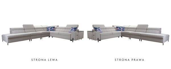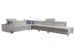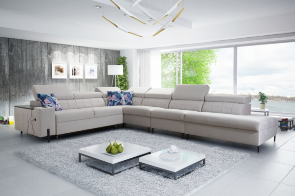 Narożnik KLARA IX – regulowane zagłówki + barek + GRATIS PODUSZKI – 283×379 cm