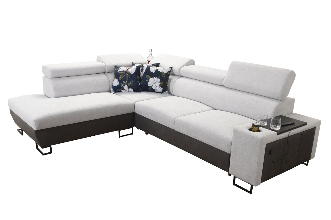 Narożnik LEMBO VII – regulowane zagłówki + port USB + GRATIS PODUSZKI – 285×220 cm