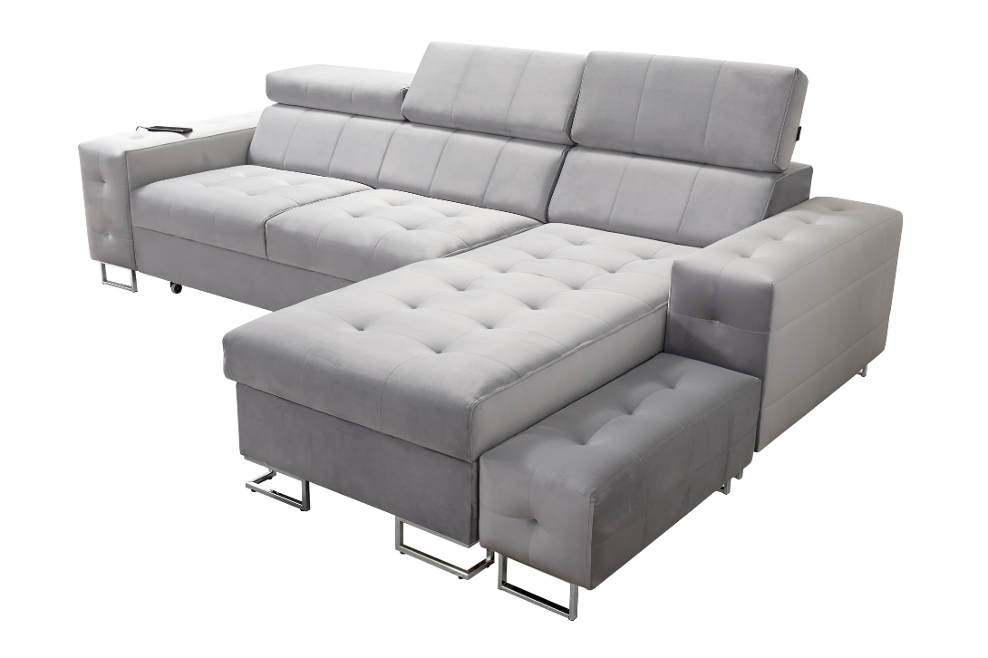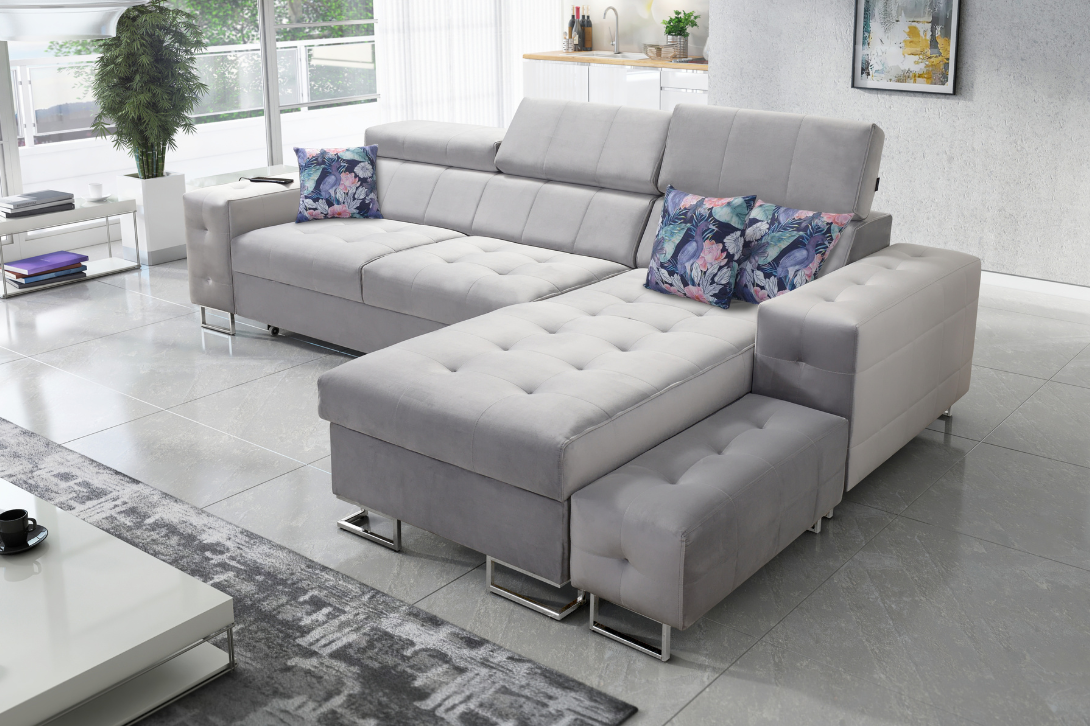 Mebel bardzo wysokiej klasy, który doskonale uzupełni Twoje wnętrze. Narożnik LUXE łączy w sobie nowoczesny design i funkcjonalność, oferując szereg praktycznych udogodnień.