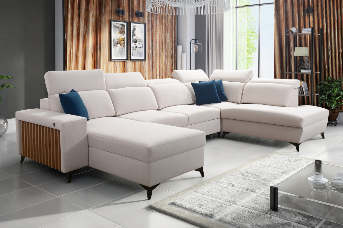 Mebel bardzo wysokiej klasy, który doskonale uzupełni Twoje wnętrze. Narożnik łączy w sobie nowoczesny design i funkcjonalność, oferując szereg praktycznych udogodnień.