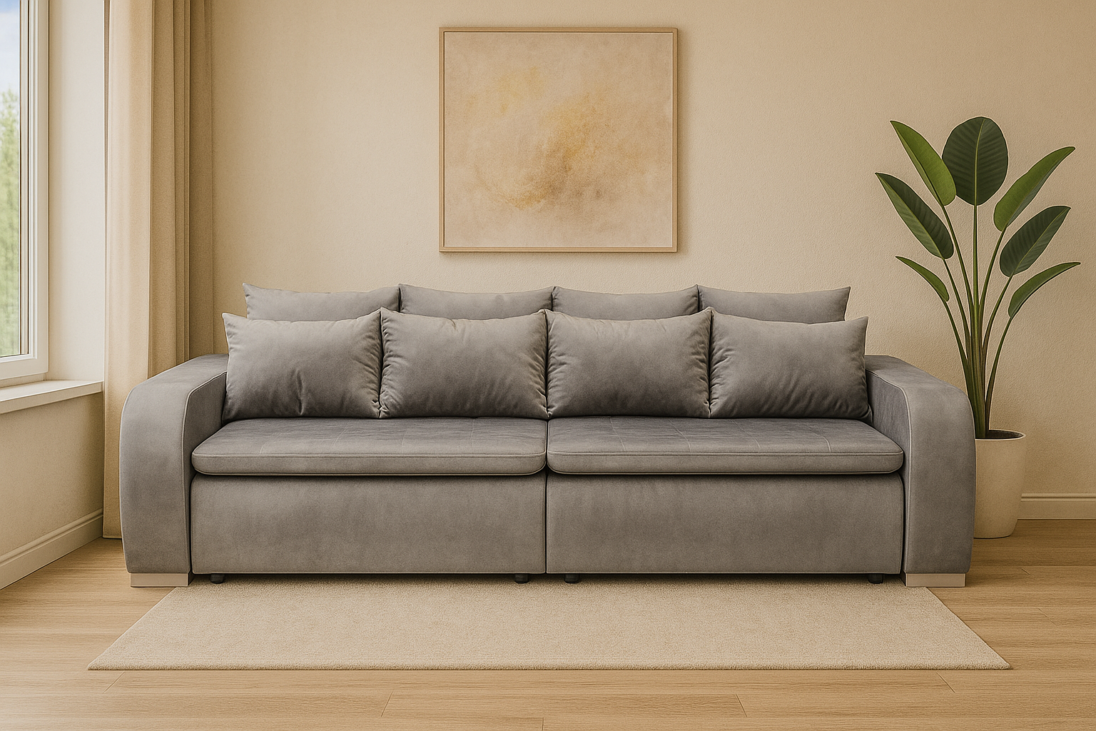 To mebel z funkcją spania i dwoma pojemnikami na pościel, który zapewnia wygodę i praktyczne rozwiązania na co dzień.